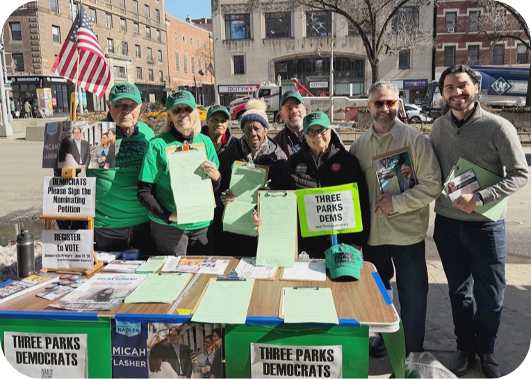 Our Club Three Parks Independent Democrats has been an active participant in Upper West Side politics for fifty years. In addition to endorsing and working for candidates who demonstrate ability, progressive convictions and who will oppose the Trump Coup, we organize phone banks, postcard writing, and canvassing trips to take back Congress and the White House. We participate in rallies, protests, and other events. Join us today to make Three Parks your political home. |
